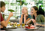 Feast on locally-grown bananas, paw-paws, mangos, pineapples and lychees in the ‘exotic fruit bowl of the world’ near Cairns. But more than fruit flourishes in the region’s rich volcanic soils, green rainforest belt and clean tropical waters. Try seafood, game meats, freshly-made pasta and organic bush foods. Visit an organic permaculture orchard in the rainforest, dine on freshly-caught barramundi in Cairns or sample macadamias and coffee on plantations in the tablelands.