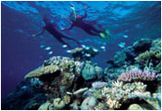 Meet the world’s biggest fish – the whale shark – in the clear, turquoise waters of Western Australia’s huge fringing reef. These gentle underwater giants feed on the bright coral reef between April and June. You can also dive, swim or snorkel with dolphins, graceful manta rays and hundreds of species of tropical fish. On Ningaloo, this rainbow of marine life is just metres from the shore. |